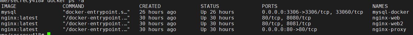 docker ps -a 명령어로 전체 컨테이너를 출력한 모습입니다.