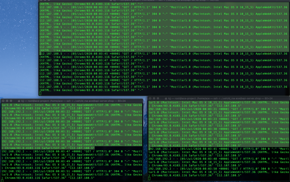 리버스 프록시 서버는 요청을 6번 받았지만 각각의 웹서버는 3번을 나눠서 받은 걸 확인할 수 있습니다.