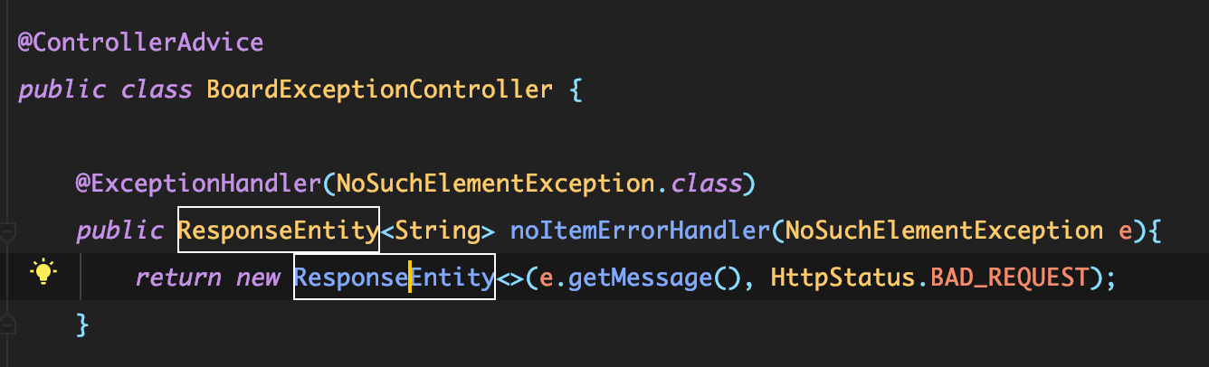 그전부터 스프링을 썼다면 @ExceptionHandler를 사용할 수 있다. @ExceptionHandler가 특정 클래스에 대한 예외처리를